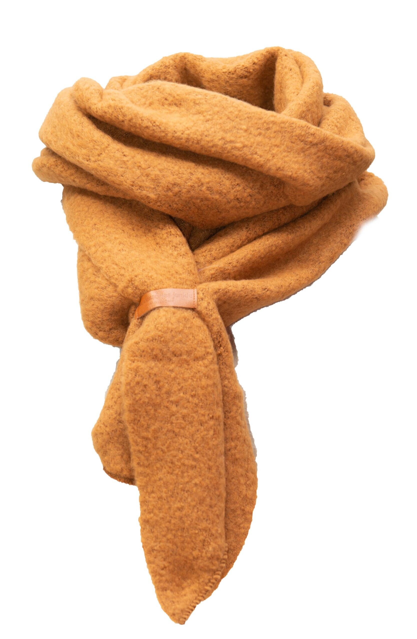 Of stop een punt in het leren labeltje en speel een beetje met de punten waardoor je allerlei verschillende lengtes kan creeeren. Kortom een veelzijdige sjaal die zowel binnen als buiten gedragen kan worden.