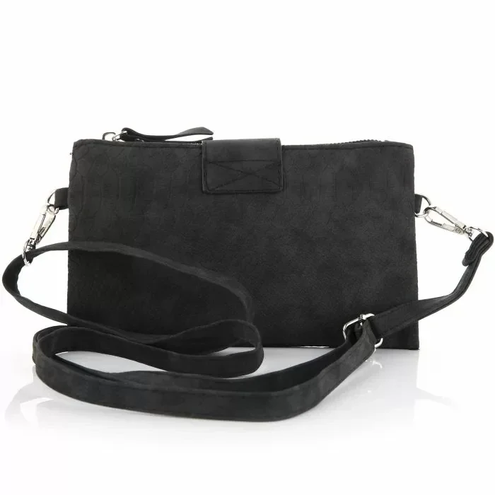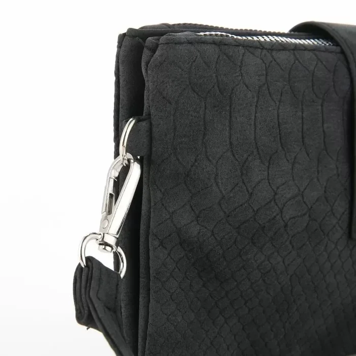 Uitklapbaar schoudertasje Ivy met slangenpatroon zwart