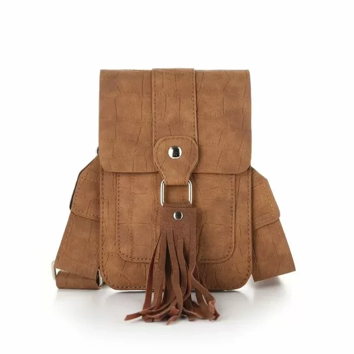 Telefoontasje Iris is een handig klein tasje voorzien van meerdere vakken en met kwast. Het tasje heeft twee grote vakken en een kleiner vak aan de voorkant die worden afgesloten door een flap met magneetsluiting. Aan de achterkant van het tasje zit ook nog een vakje dat aflsuitbaar is met een rits. Ideaal voor je sleutels bijvoorbeeld.