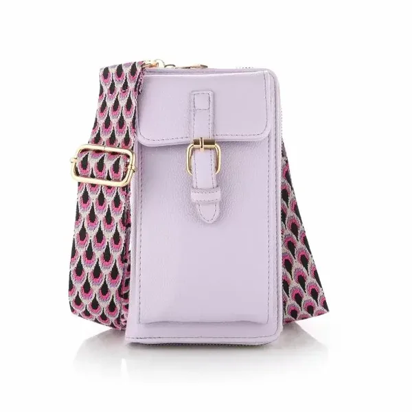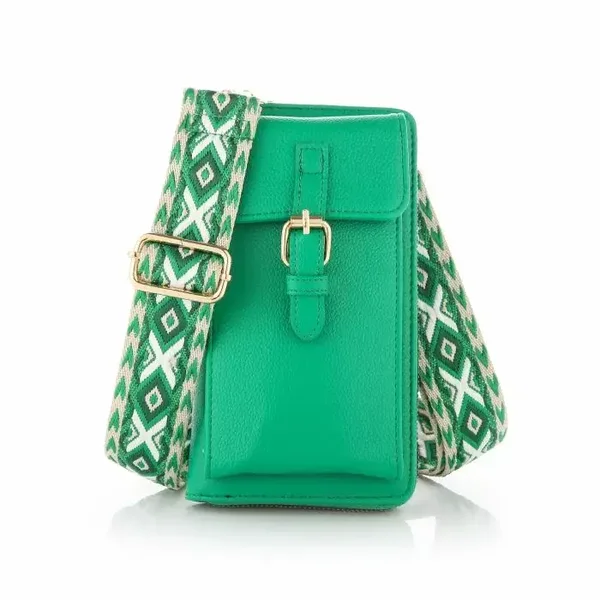 De tas wordt geleverd met luxe band van 3.5 cm breed en een effen smalle band van 1 cm in dezelfde kleurstelling als het tasje. De afmetingen zijn 12 * 21 cm en er is ruimte voor 16 pasjes. Daarnaast zijn er nog twee vakken voor briefgeld en een extra vakje dat af te sluiten is met een rits voor bijvoorbeeld je huissleutel. Met andere woorden ideaal voor naar een festival, concert of avondje uit.