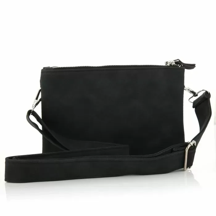 De afmetingen van het tasje zijn 22 * 14 cm en hij is gemaakt van 100% vegan leather. Verkrijgbaar in Black-Antraciet / Brown / Light Grey. De tas wordt geleverd met zowel een schouderband van 2.8 cm breed als een polsband van 1 cm breed.