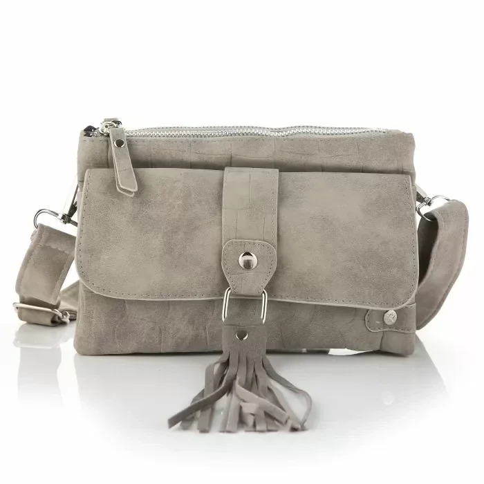 Crossbody Tas Lara Light Grey met tassel en voorvak